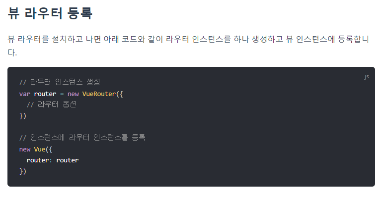 Step3. Vue 인스턴스의 router 속성에 router 인스턴스 등록
