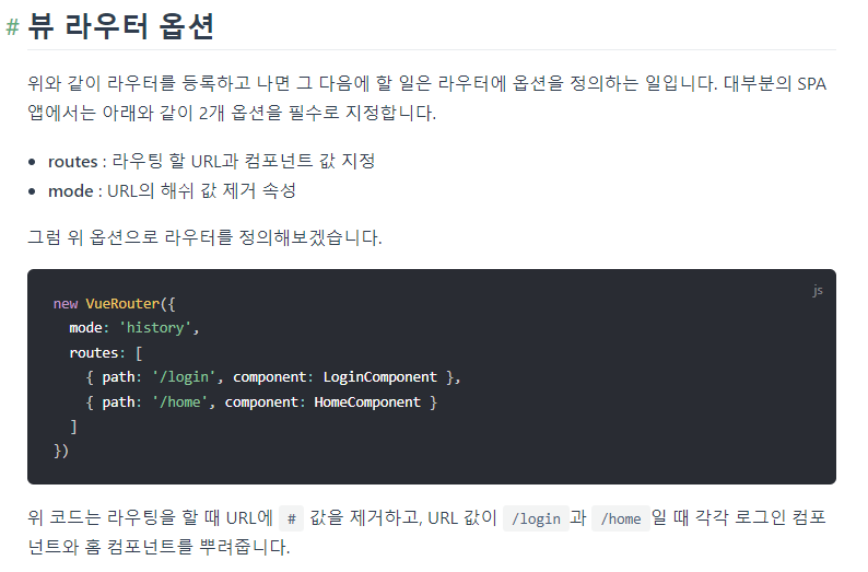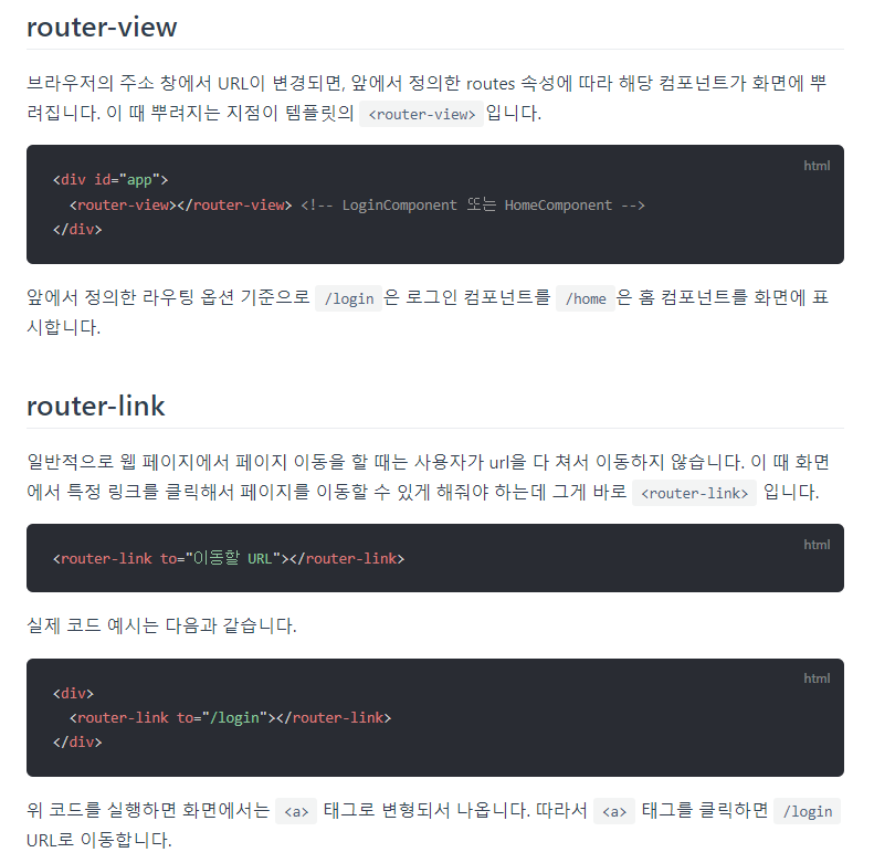 - 뷰에서 싱글 페이지 어플리케이션, 페이지 간 이동하는 기능을 구현할 때 사용
