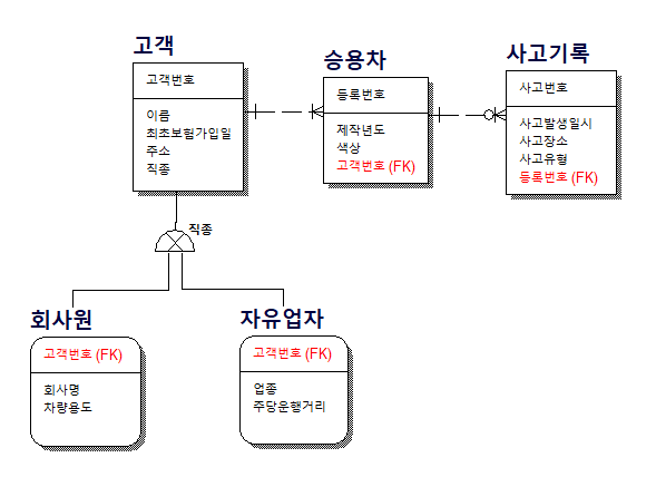 ▷ 각 고객은 승용차를 보유한다. 이때 각 차는 사고기록을 유지한다.
