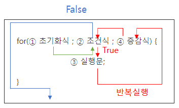(초기화식, 조건식, 증감식은 생략 가능하나, 세미콜론(;)은 생략할 수 없다(But, 지양하는 방법이다.))